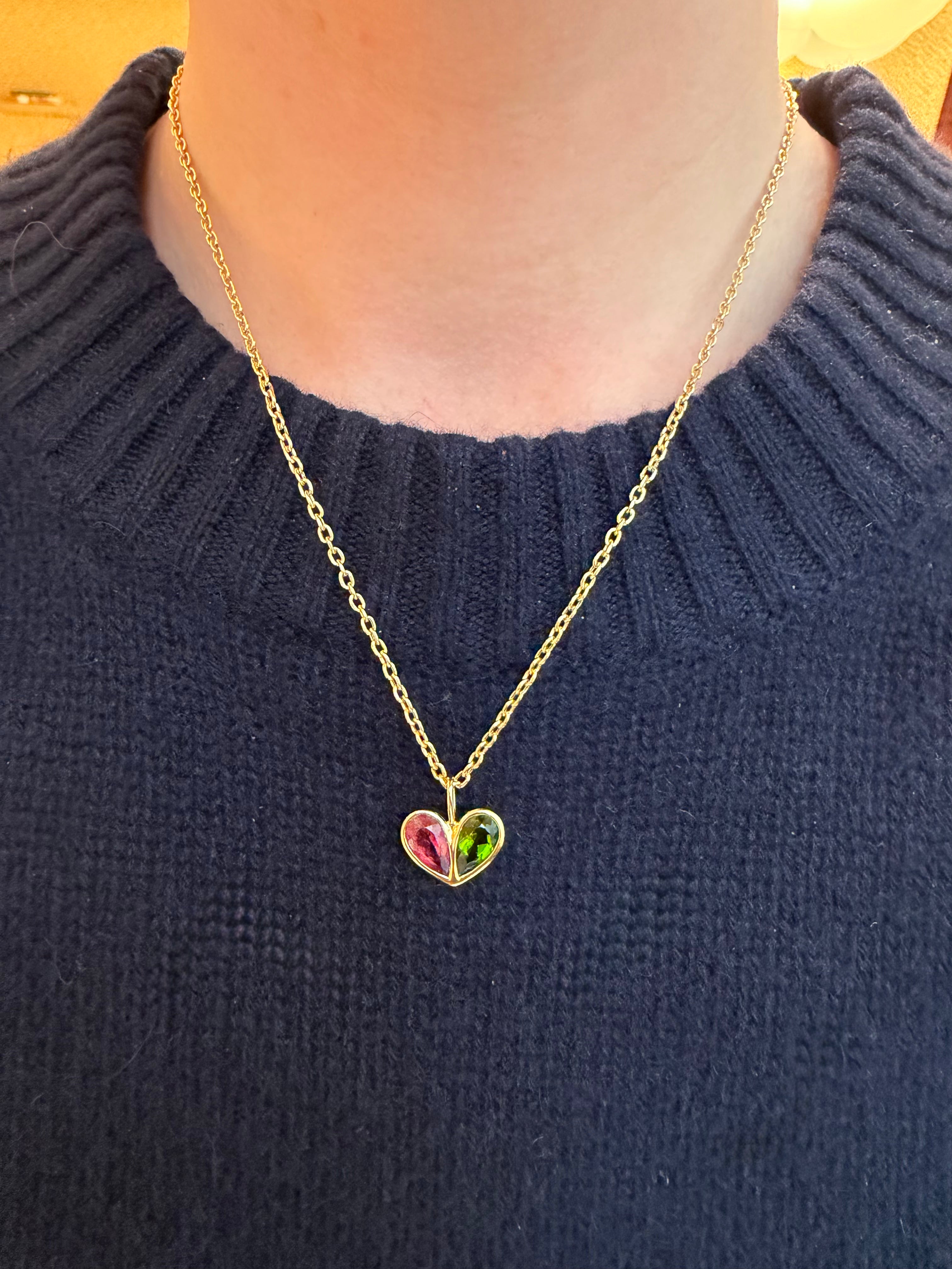 Jumbo Sweetheart Charm Pink Tourmaline & Green Tourmaline