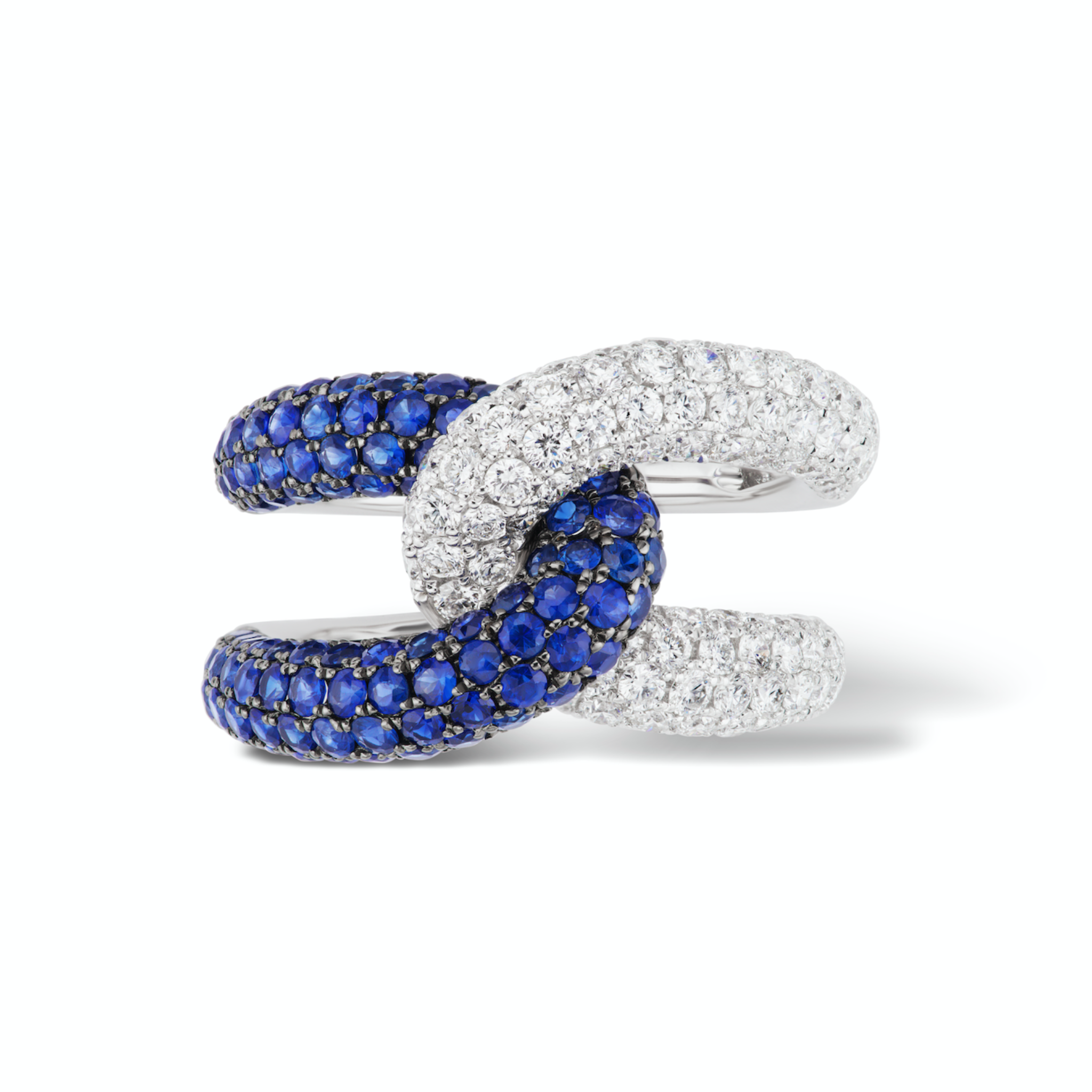 Ring is made up of two interchangeable parts. To order a custom combination or third part please e-mail info@gemellajewels.com.