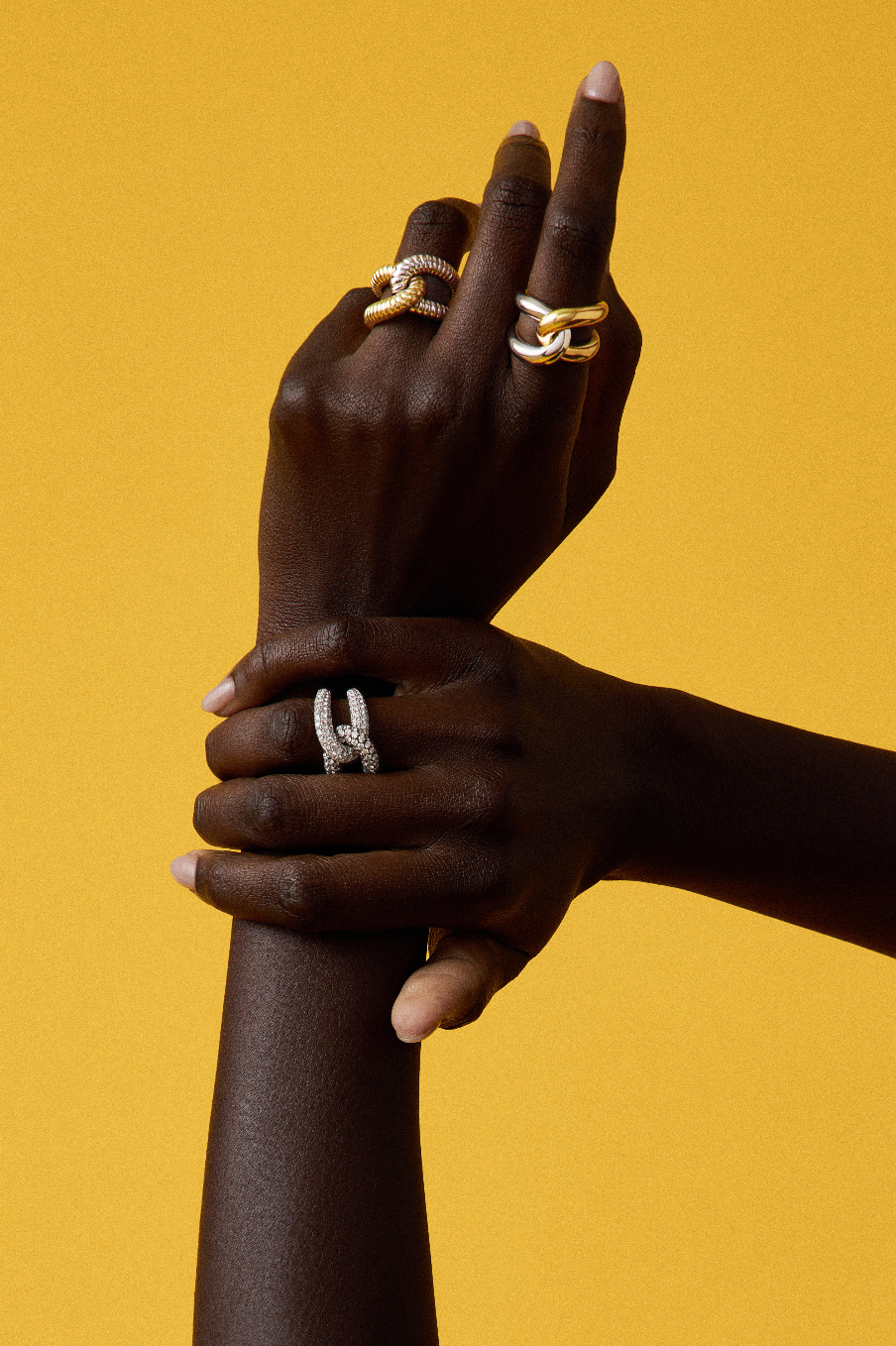 Ring is made up of two interchangeable parts. To order a custom combination or third part please e-mail info@gemellajewels.com.